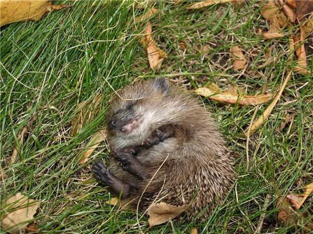 Случилось это в прошлом году, поздней осенью, во второй половине октября. Листопад, естественно... Сгребала я листву с газонов и вдруг вижу - лежит малюсенький такой еженок. И спит. Прикрывшись фиговым листочком. Я его потолкала немного, но он только потянулся и позевал...