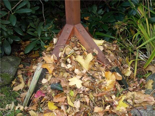 Вижу - просыпаться не хочет. Все, думаю, впал в спячку. Прикрывшись одним листочком. Маленький совсем, бестолковый... Ну кто ж так в спячку впадает?! Стало его жалко и я ему сделала вот такой "домик" из листьев. Положила его осторожненько в самый цетр и как следует прикрыла листьями.