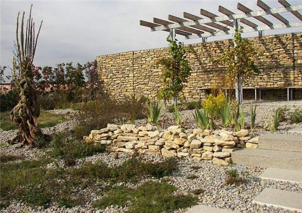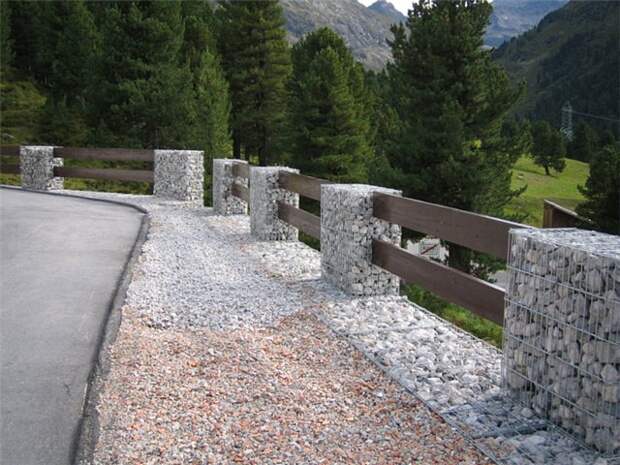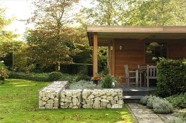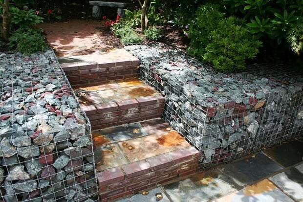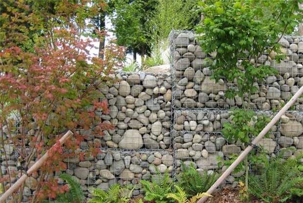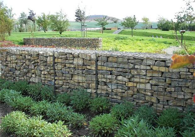 Слово «габион» имеет французские корни и означает «корзина с камнями». Габионные конструкции применяются в мире более 100 лет. Изначально предназначением габионов было укрепление насыпей при строительстве дорог. Между тем корзины — клетки нашли применение и в садах, где они решают множество задач: с их помощью делают подпорные стенки, террасируют откосы, строят заборы, скамейки и столы.